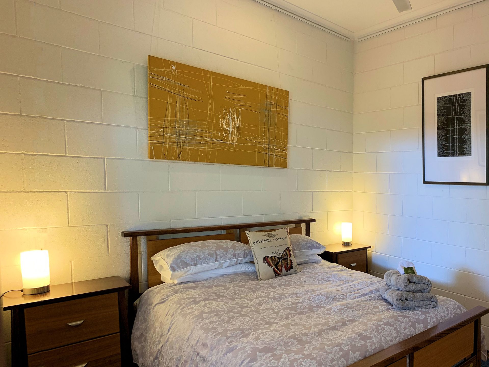 Step outside to enjoy tranquil views of the 'Buddha Pond,' located just in front of the solar-heated saltwater pool. With two comfortable queen beds, this apartment is perfect for couples or friends traveling together. It’s fully equipped with everything you need, including a well-appointed kitchen with a full-size refrigerator and laundry facilities. Enjoy access to free wi-fi internet, foxtel, art books, and magazines for your entertainment. High-quality cotton bed linen, towels, and all necessary cutlery, crockery, and cookware are provided—ensuring a comfortable and relaxing stay.